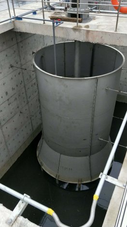 筒内:配有轴流叶轮,使流量在反应池内快速絮凝和循环;