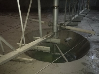 沉淀的污泥沿着斜板下滑然后跌落到池底,污泥在池底被浓缩。刮泥机上的栅条可以提高污泥浓缩效果,慢速旋转的刮泥机把污泥连续地刮进中心集泥坑。浓缩污泥按照设定程序或者由泥位计来控制以达到一个优化的污泥浓度,然后间断地被排出到污泥处理系统。