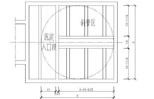 沉淀入口段的过堰流速取0.05m/s,则水层高度:0.112÷0.05÷8=0.28m。另外考虑到此处设置堰的目的是使推流段经混凝的原水均匀的进入到沉淀段,流速应该比较低,应该以不破坏絮体为目的。因此,考虑一些因素,取1.0m的水层高度。