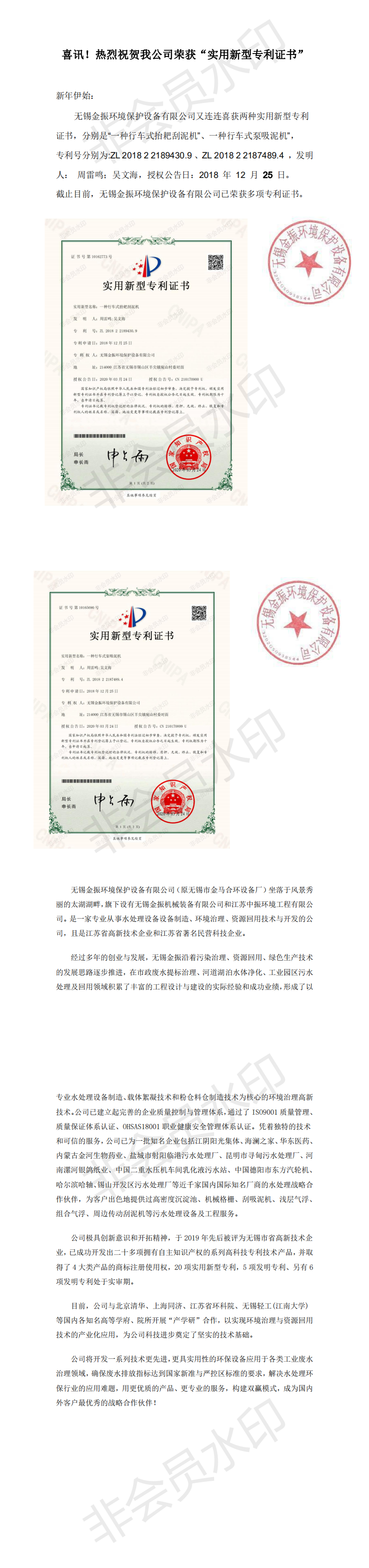 喜讯!热烈祝贺我公司连获“实用新型专利证书”